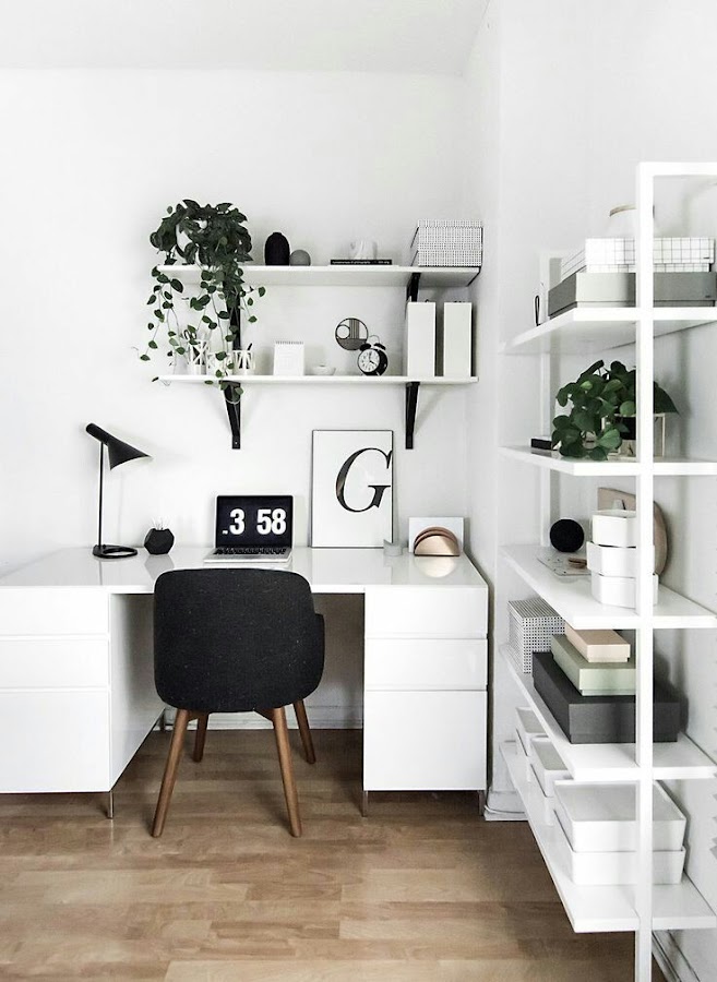 Otra opción bonita pero el escritorio ya es más elaborado y grande, no se ajusta a lo que yo busco pero me encanta como esta organizado y la idea de una estantería de las industriales en un lateral no me disgusta, y así tendría sitio para mis libros, álbumes y cajitas para esconder mi desorden jajaja.