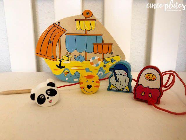 3: Piezas/abalorios para practicar motricidad. C tiene varias cajitas de abalorios para pulsearas y su hermano siempre quiere participar pero claro, no atina con las piezas pequeñas. Este juego esta pensado para niñ@s a partir de 2 años y viene con la caja/barco para almacenar las piezas.