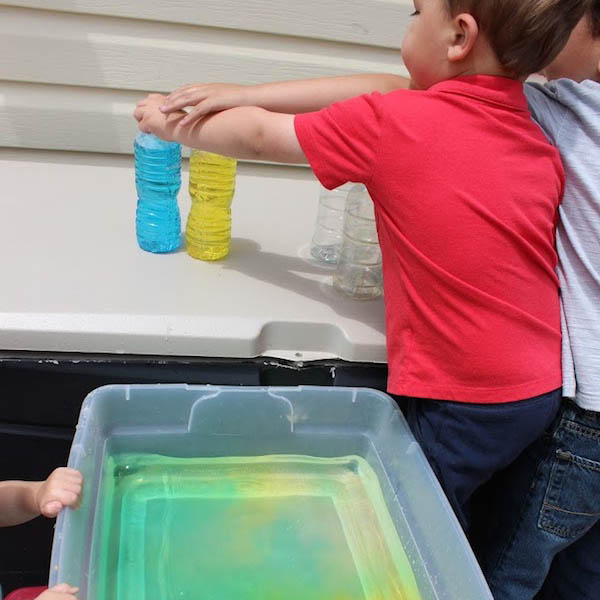 Otra idea para aprender a obtener colores a partir de la mezcla de otros es tiñendo agua con colorante alimentario. Sobre una superficie blanca, ya sea un plato, una bandeja, o algo similar, y con la ayuda de un cuentagotas los niños podrán mezclar distintos colores y descubrirán las diferentes tonalidades de un mismo color al poner mayor o menor proporción de los colores.