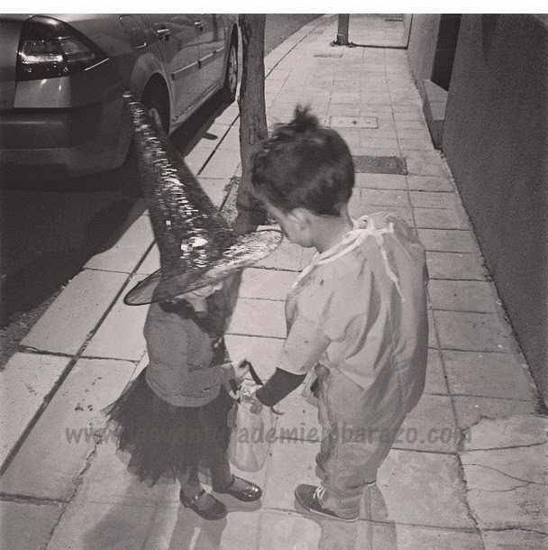 Ahí no quedó todo porque si nuestra intención era volver pronto a casa, al llegar a la plazoleta nos encontramos a todos los vecinos en la calle, muchísimos niños y adultos disfrazados, compañeros del cole (del antiguo y del nuevo), y no pudimos evitar quedarnos. Lo más curioso fue que visitamos algunas casa de vecinos que las habían decorado como auténticas casas del terror, con sus habitantes disfrazados saliendo de debajo de una mesa o tras una puerta. Imaginaos esa mezcla de diversión y pánico absoluto en los niños. Estuvo genial, toda una sopresa tratándose de mi barrio.