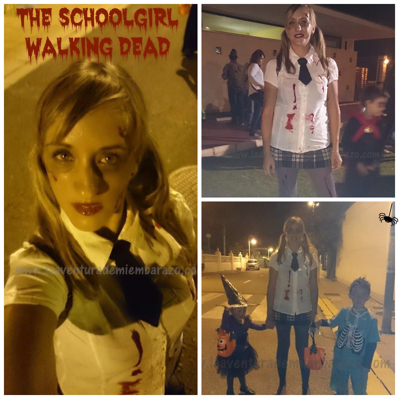 Así me convertí en colegiala zombie por una tarde. Lo mejor de todo es que la gente me veía y me decía que iba genial, que parecía un disfraz comprado a propósito. Al menos le he dado uso a esa ropa que llevaba siglos guardada, lo que me daba miedo era no entrar en esa falda talla mini jajaja.