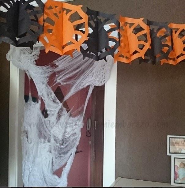 Así que el puto pinchazo del coche me fastidió toda la mañana y no tuve tiempo de preparar los huevos araña y las salchichas dedos de muerto. Al menos pude decorar la casa con las guirnaldas y la tela de araña, tardé un par de minutos y aunque no era gran cosa, al menos hacía ambiente. Y lo más importante, mis niños se sorprendieron mucho al llegar a casa y les encantó la idea.