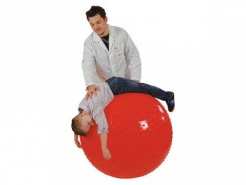 Es el uso de un balón gigante (balón suizo) para realizar movimientos, estiramientos y ejercicios que mejoran el control motor, la flexibilidad, la postura, los arcos de movimientos, la propiocepción, aumenta la fuerza muscular, mejora las reacciones de defensa, reacciones de enderezamiento y coordinación. Muchos niños les agrada y divierte balancearse, rebotarlo, alzarlo y sobretodo brincar en el balón terapéutico.Tratamiento Fisioterapéutico (dosificación)
