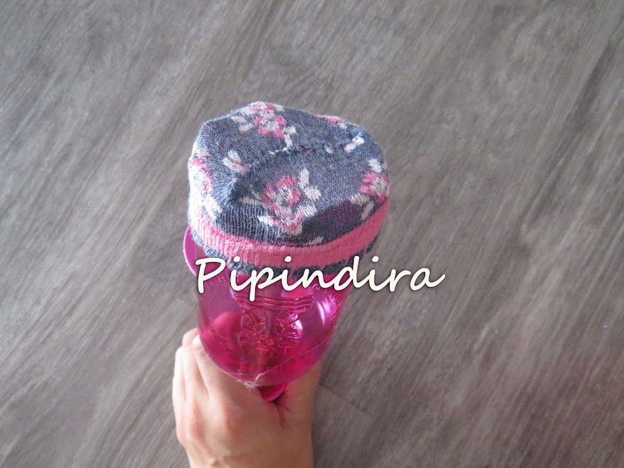 Y estos son los calcetines que usamos. Unos calcetines viejos de Indira que ya le quedaban pequeños y que estaban bastante currados ya jeje.