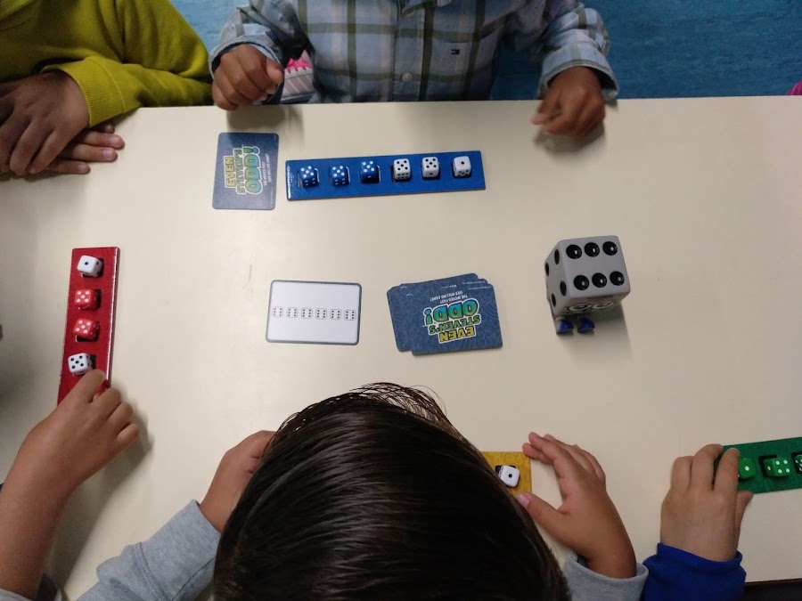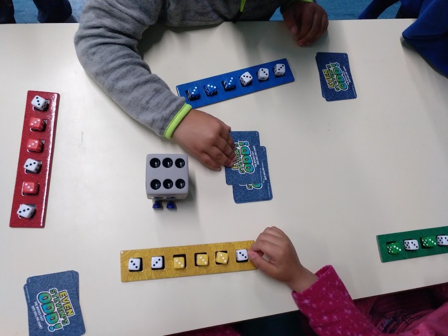 Sin embargo, conociendo a mis peques, he variado la forma de juego, y en vez de jugar dándole tanto papel al azar, hemos apostado más por nuestra destreza manual, y hemos jugado dejando los dados colocados en los huecos de nuestro soporte y haciéndolos girar sobre si mismos con nuestros dedos para ponerlos todos en el orden correcto con los números que cada tarjeta solicitaba.