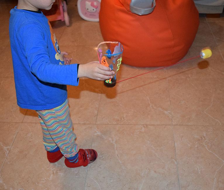 No es un juego sencillo para ellos, porque requiere habilidad, coordinación y pensar cómo hacer para meter la bolita dentro. Muchas de las veces se ponían ha darle vueltas a la bolita como locos, que parecía un ventilador. Pero no paran de practicar para conseguir lo que les he ensañado que hay que hacer. ¡¡Y lo han conseguido ya alguna vez!!.