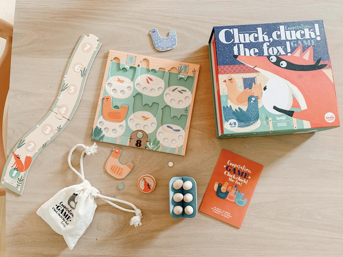 Este juego lo tenemos desde Navidades y es una perfecta opción para niños de entre 4 y 8 años. Esta hecho completamente de cartón y de kilómetro 0. En este caso todos los participantes juegan en equipo para conseguir que el zorro no se coma los huevos o las gallinas. Se monta el tablero y según nos marque el dado tendremos que ir avanzando el zorro, montando las hueveras, recogiendo huevos… Se trata de un juego muy divertido y bonito con el que estoy segura que os lo pasaréis en grande tanto grandes como pequeños.