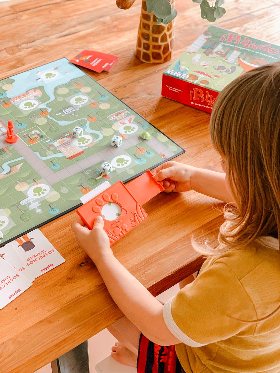 Este juego también es súper divertido y uno de los preferidos de Valentina del momento. Es más complicado pero el hecho de que sea cooperativo hace que puedan jugar con ayuda del equipo que si lo tuvieran que hacer solos. En este caso el enigma se trata de saber quién ha robado un pastel y todos los participantes somos detectives. A medida que vamos encontrando pistas y viendo sospechosos podemos adivinar quién es el ladrón entre los posibles sospechosos.