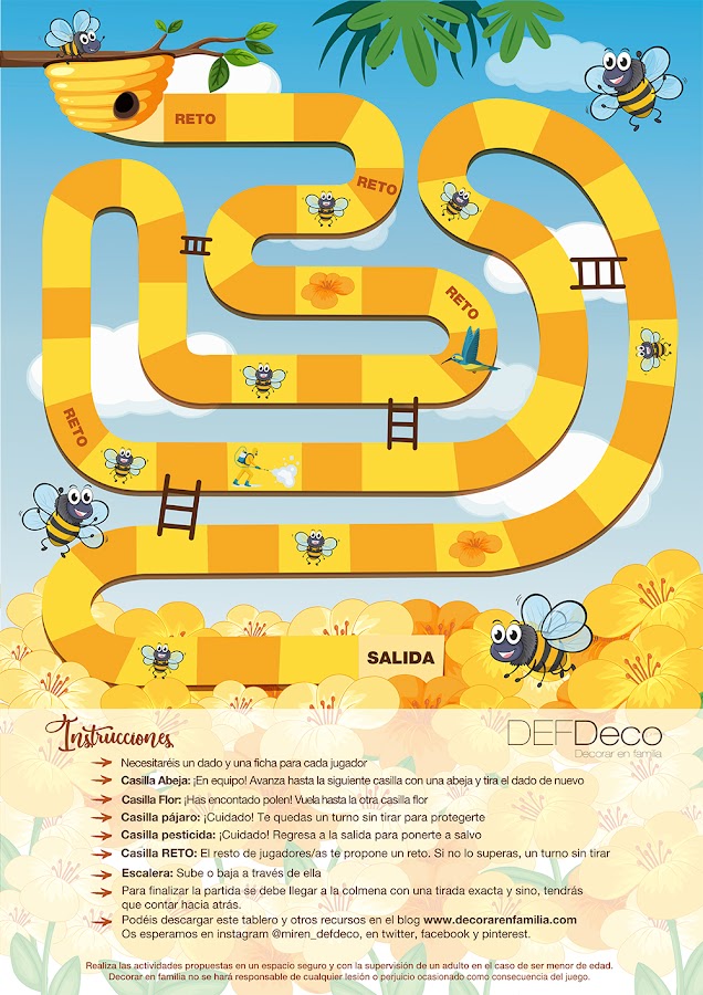 Decorar en familia queremos daros más ideas para disfrutar del tiempo en familia, y hemos diseñado este juego de mesa print and play con unas abejitas como protagonistas; y porm otro lado, hemos buscado por la red unos 50 juegos y actividades que esperamos que os gusten ¡Todos ellos descargables gratis!
