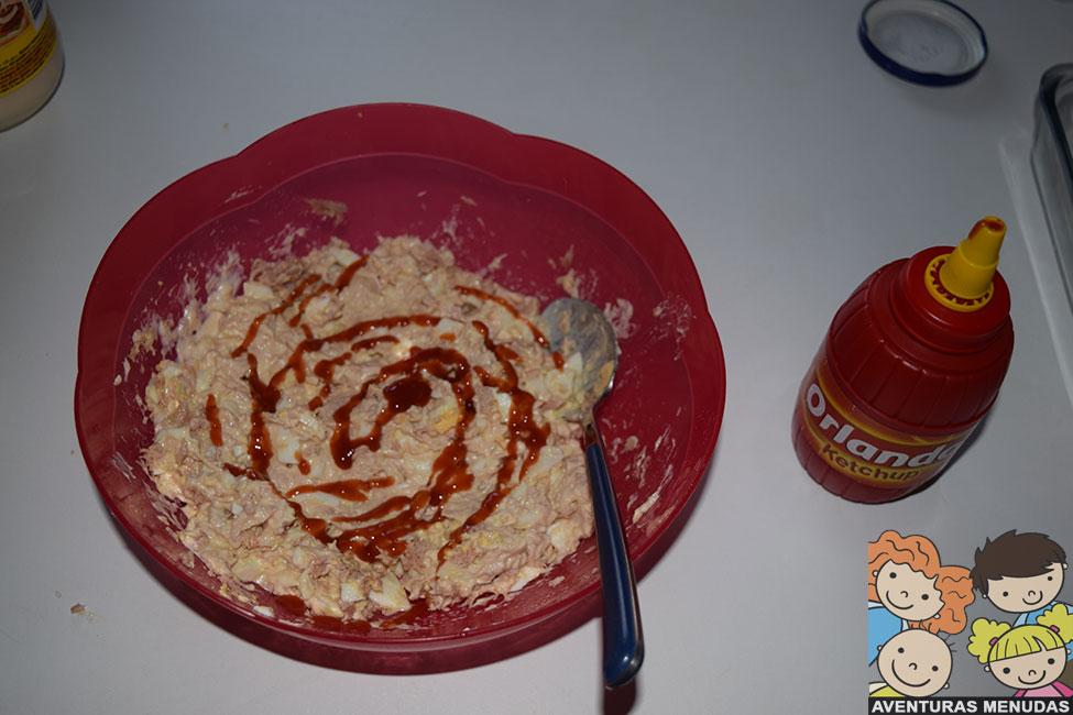 Mezclamos todo con mayonesa y un chorrito de ketchup.