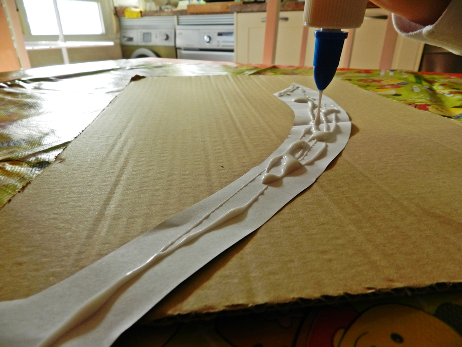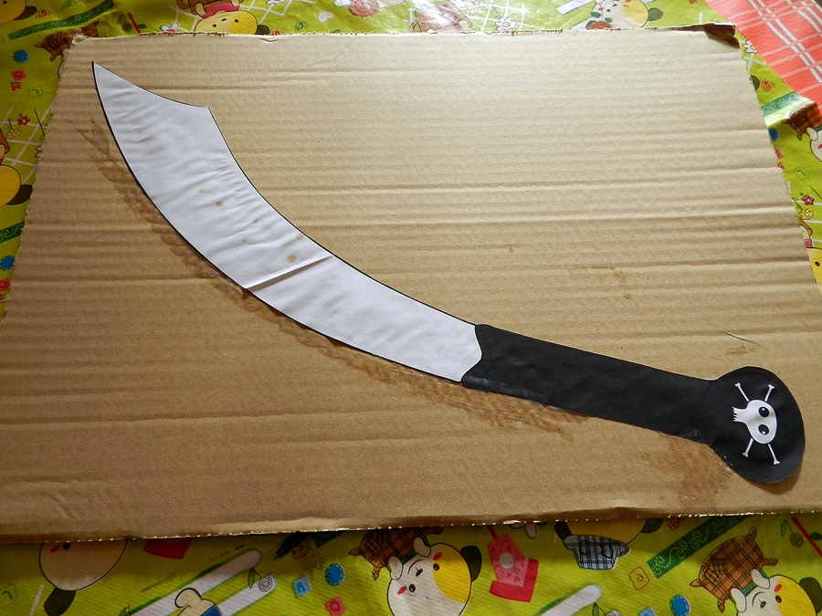 Pasamos una tarde la mar de divertida, recortando, pegando... y ya tiene por fin C su espada preparada, así nos ha quedado