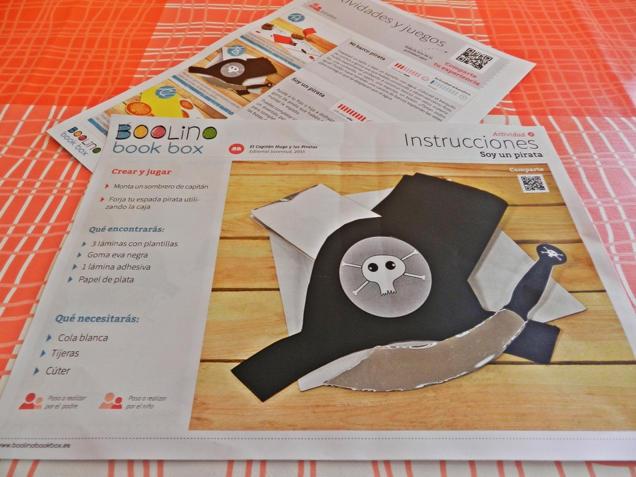 Boolino me ha enviado los materiales de la segunda actividad y la verdad que este sombrero y espada le van a venir genial a C para completar su disfraz de pirata ^__^