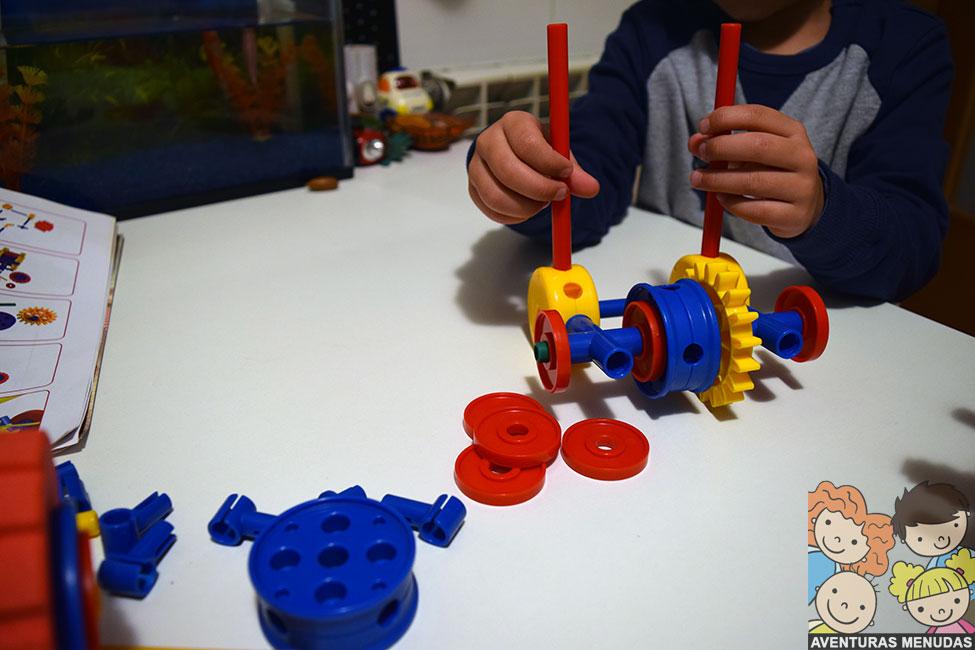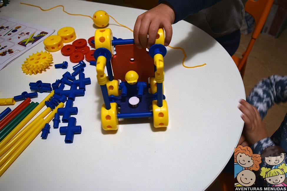 Los niños sienten enseguida mucha curiosidad por ver cómo se manipulan estas piezas, cómo se puede montar con ellas objetos y en este caso vehículos. Para que entiendan mejor cómo usar las piezas y formar con ellas objetos, yo os recomiendo que empecéis con ellos asumiendo el primero de los retos que viene en cada juego. De esa manera irán realizando cada uno de los pasos que se requieren para construir, en este caso, cada vehículo, pudiendo comprobar para qué se usa y como se ensambla cada tipo de pieza.