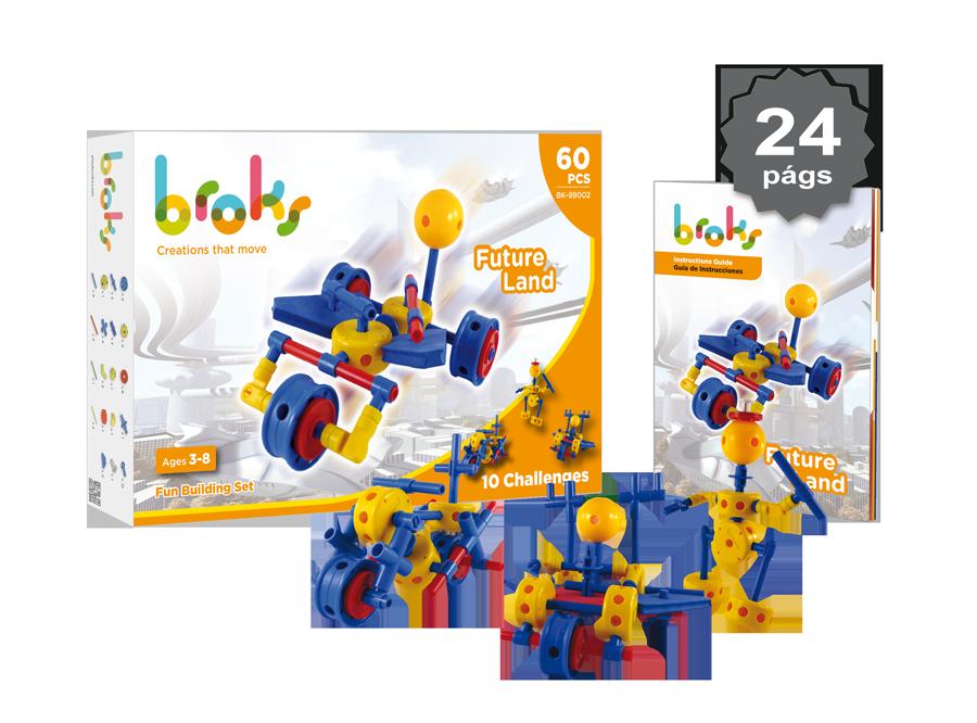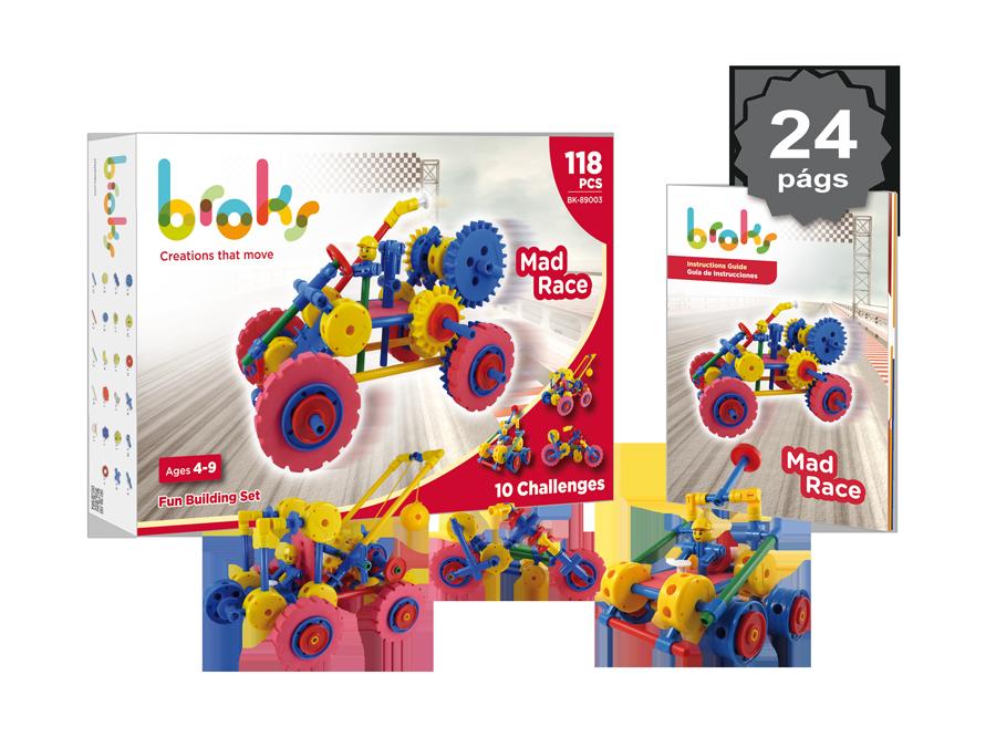 Los juegos de construcción de Broks son muy originales y realmente diferentes. Se basan en un conjunto de piezas de fácil manipulación para los niños y una serie de retos a conseguir con ellas. Los retos que se proponen en cada pack son 10 que van del más sencillo al más complejo, pero no se acaba ahí, ya que, como piezas de construcción que son, es posible dejar a los niños que hagan pruebas y experimenten para crear otros elementos de su interés y creación propia..