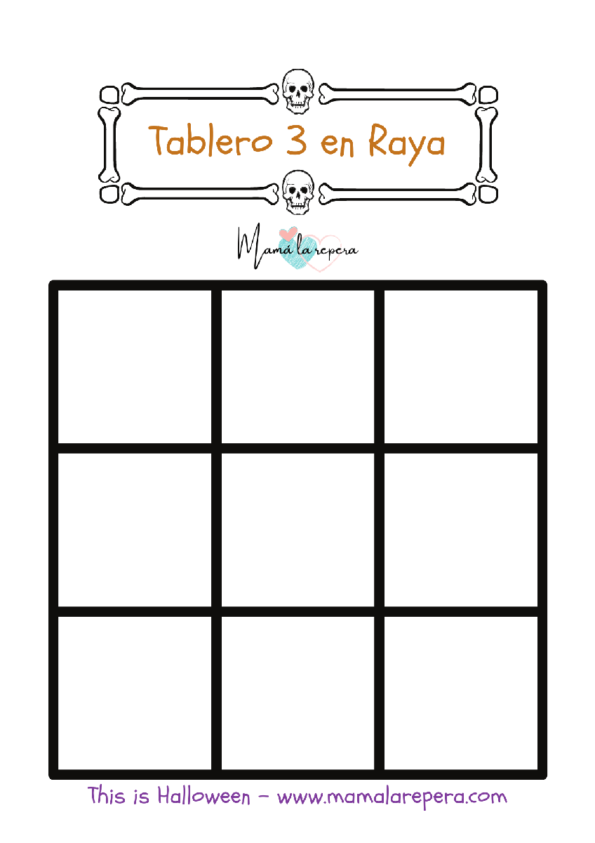 Se trata del clásico juego de estrategia 3 en raya o también conocido como 3 en línea, pero con un diseño de brujas y casas terroríficas acorde con la temática de Halloween.El juego contiene un tablero y diez fichas (cinco para cada jugador), que podéis descargar e imprimir en casa. Os recomiendo imprimir en cartulina o plastificar para una mayor durabilidad. Podéis ver como plastificar a modo casero aquí.