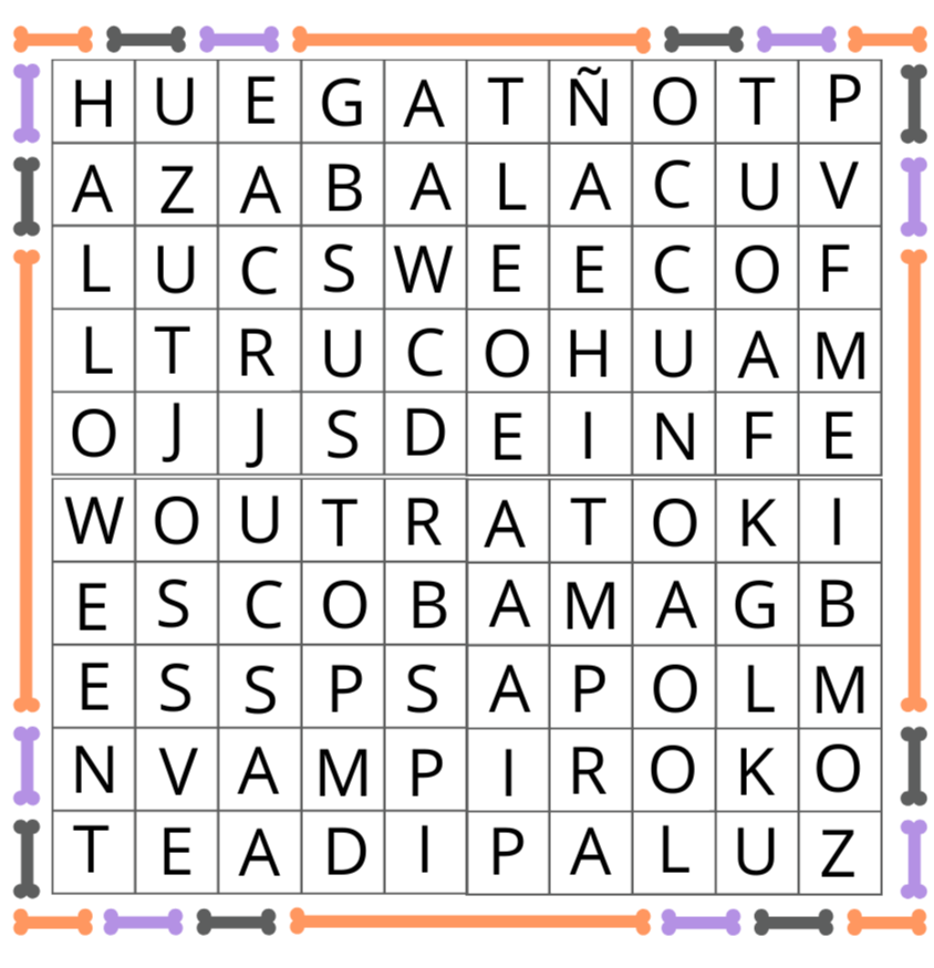 He diseñado dos sopas de letras adaptadas a diferentes edades. Ambas contienen palabras relacionadas con la temática de Halloween que podéis consultar en el margen de las cuadrículas. Solo tenéis que descargar e imprimir el archivo donde vienen incluidas las dos sopas de letras. Os dejo el enlace más abajo.Sopas de letras para imprimirDescargar