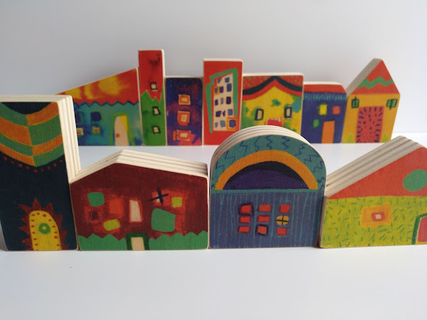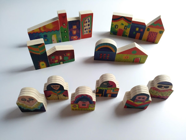 Un preciosojuego de construcción hecho a mano en madera sin barnizar y con pintura al agua no tóxica, e ilustrado con un diseño muy original.
