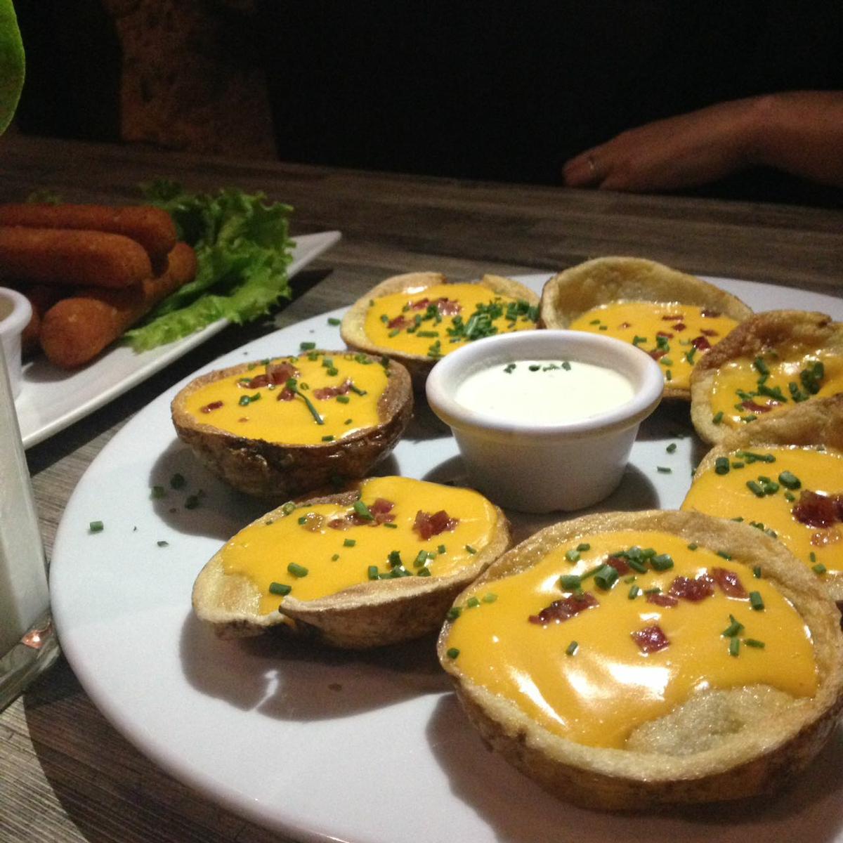 Mientras llegaba el plato de ellos, Will y yo no podíamos dejar de disfrutar del lugar y obviamente su comida, ordenamos de entrada Mozarella Sticks (dedos de queso apanados con especias de la casa y salsa miel mostaza) y Potato Skins (cascos de papa dorada rellenas de queso cheddar, colby y tocineta) y no podíamos creer la cantidad de comida que había en la mesa sin aún pedir nuestro plato fuerte.