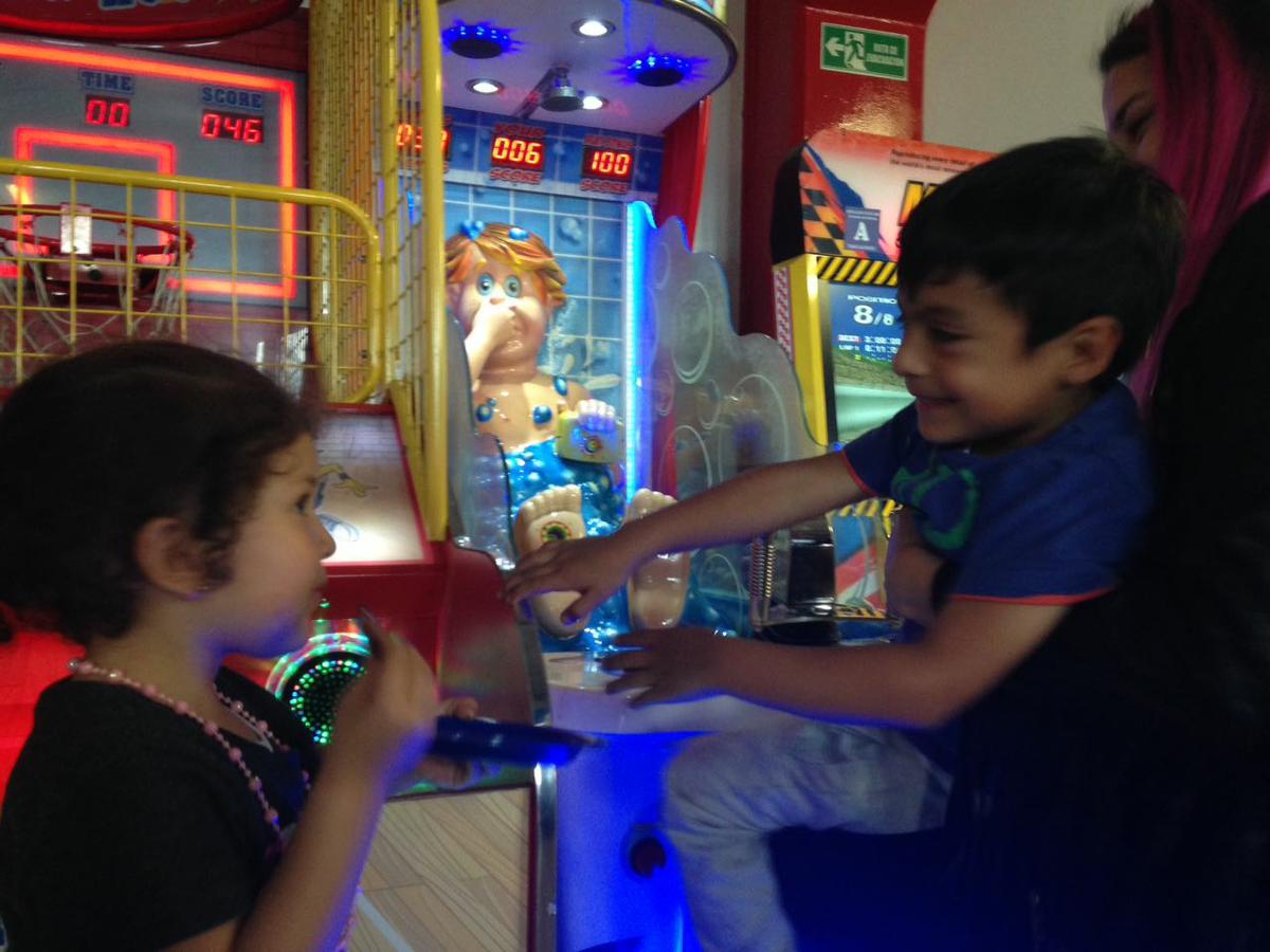 Inmediatamente después de miradas de ternura y gritos de alegría subimos al tercer piso donde los niños quedaron encantados, con piscina de pelotas, donde por cierto, el niño ayudaba siempre a la chiqui y la cuidaba, habían maquinas de juego, y las dos actividades que más les gustó, hacer galletas y pintar cerámicas, pero esperen, creo que debo contarles estas dos experiencias ya que fueron realmente hermosas y sobretodo de aprendizaje no solo para ellos sino para nosotros también.