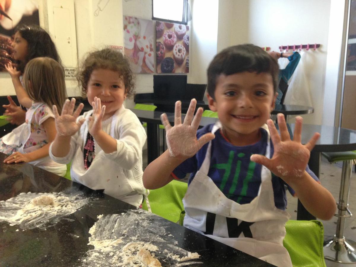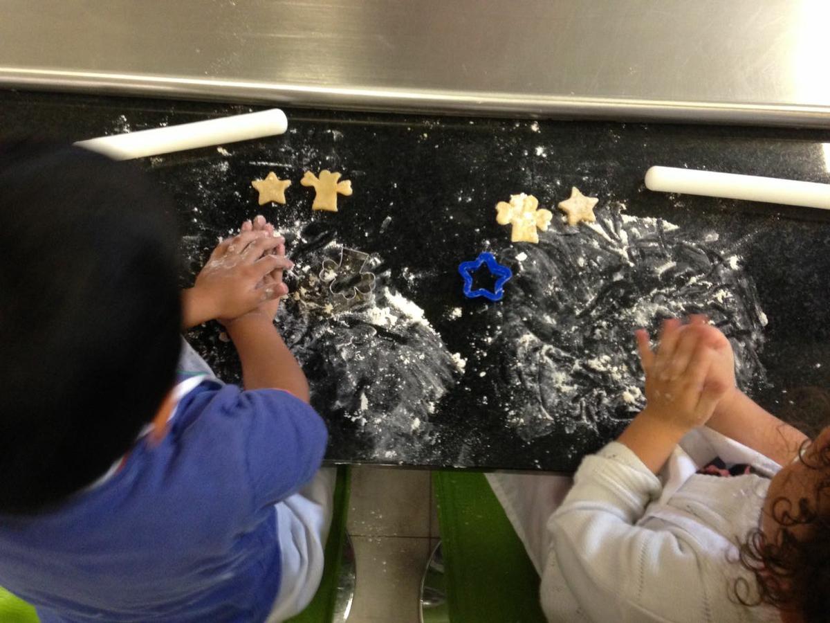 Hacer Galletas, toda una aventura manual donde crean habilidades motrices en ellos y les enseñan de una forma divertida (tan divertida que querían llegar a casa a seguir horneando), fue hermoso verlos con sus delantales y manitas llenas de harina, pero lo mejor fue ver como la chiqui era tan delicada (su esencia de mujer), como media cada dulce, cada espacio, cada detalle (no quiere decir que los hombres no sean cuidadosos jajaja), y el chiqui aplastaba, amasaba con fuerza y con actitud, disfrutaron muchísimo este momento decían era su favorito y créanme, el de nosotros también lo fue.