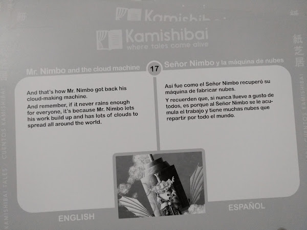 El truco es que las láminas tienen ilusteaciones por una cara y texto por la otra. Así, el narrador puede ir interpretando los textos desde detrás del teatro, mientras los niños ven pasar los dibujos y escuchan la historia.