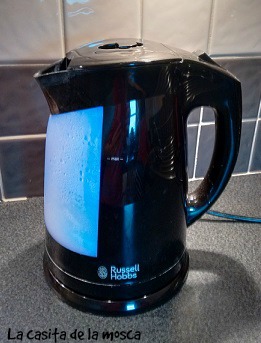 Hoy os voy a dar a conocer, a quienes no la conozcáis ya, un utensilio de cocina que yo uso a diario, se trata de una kettle. Esta jarra, que puedes ver en la foto, sirve nada más y nada menos que para hervir agua de una forma muy rápida. Yo la conocí hace muchos años porque mi compañera de piso y buena amiga Laura, que había vivido en Inglaterra, tenía una. Desde que vine a vivir aquí, Inglaterra, la ves en todos los sitios, no hay hotel que no tenga una en las habitaciones con sus correspondientes bolsitas de té. Aunque tengo microondas, cuando quiero, por ejemplo, hervir una pasta, primero pongo la Kettle a calentar con agua y en un minuto tengo el agua hirviendo, de modo que ahorró un montón de tiempo, el tiempo que estás esperando hasta que el agua empieza a hervir para echar la pasta, que aunque parezca que no, en ocasiones que tienes prisa se agradece :)