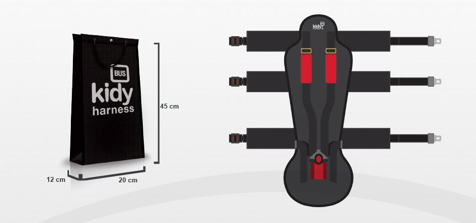 Se trata de un respaldo textil lavable que esconde un sistema de arnés que se ancla fuertemente al asiento de autobús y retiene al niño con los típicas fijaciones de cinco puntos, como las de la mayor parte de los SRI que instalamos en nuestro coches. El sistema está testado por la normativa europea R44.04 de homologación de Asientos Infantiles elaborado por la Comisión Económica Europea. El sistema se adapta fácilmente al asiento de autobús mediante un sistema de correas. Es ligero, 1,6Kg y se instala y suelta del asiento en menos de 30 segundos , los del equipo Mercedes de F1 lo hacen en 3,2 segundos J. Se adapta también como suplemento al cinturón que tienen los autobuses ya instalados, y su uso reduciría las lesiones mortales en choque frontales un 100%.