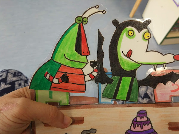 La actividad es sencilla imprime todos los personajes, plastifica y en las sillas haz un agujero en el que puedas pasar el trocito de plástico que has dejado para sujetar a cada personaje. Ve introduciendo los personajes por el orden de aparición en el cuento.