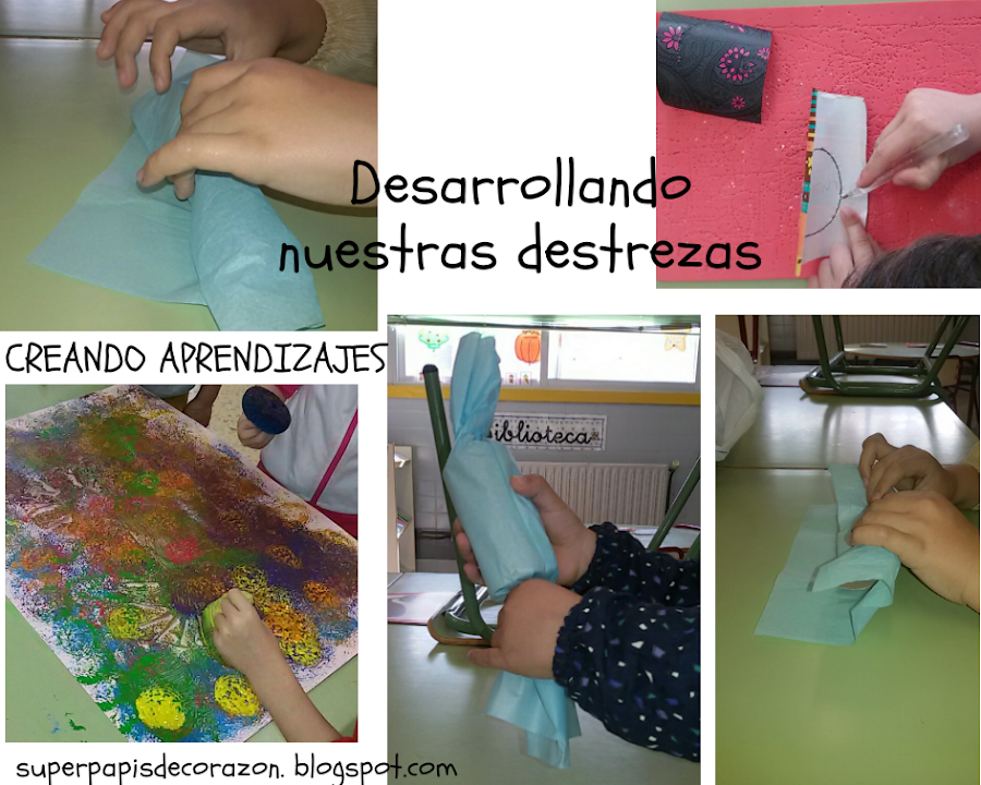 Al hilo de todo esto viene el título del post. Aunque parezca que en infantil sólo jugamos con plastilina, doblamos y rasgamos papelitos, picamos o estampamos, hay que saber mirar bien para darse cuenta de la complejidad de los aprendizajes que se dan con esas actividades.