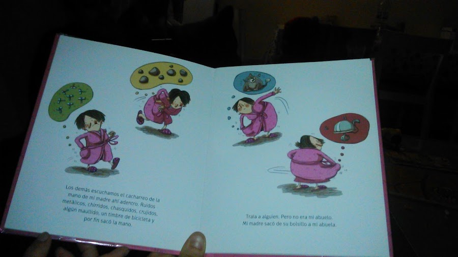 La madre decide que donde más posibilidades hay de encontrarlo es en el bolsillo de su bata y mete la mano para rebuscar.