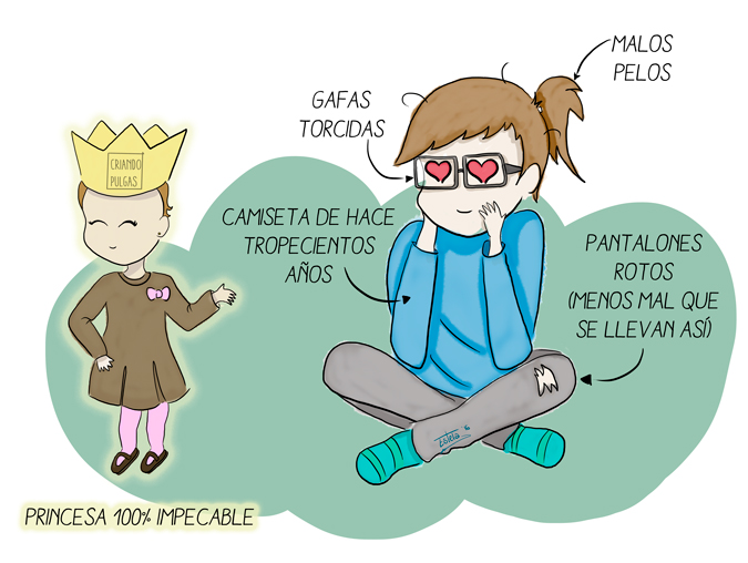 En mi caso reconozco que nunca he sido muy presumida ni me he preocupado demasiado por cuidarme pero ahora se ha hecho más evidente si cabe.No me preocupo apenas por mi ropa, no pierdo tiempo en maquillarme y las coletas siempre me sacan del apuro de ir mal peinada xD. Por el contrario mi Pulguis va hecha una princesa inmaculada siempre bien vestida, limpia y bien olorosa. Vamos, que parecemos la dama y la vagabunda xD. Y es que a día de hoy, bien sea porque se le ha regalado, heredado o comprado, podría pasarse un mes sin repetir una sola prenda cada día. Y no lo hacemos así porque para la guarde la llevamos con chándal para que vaya lo más cómoda posible y aun así, cada día de la semana va con sus galas sin repetir. Tiene tres colonias distintas, 800.000 leotardos de mil colores para combinar con los tropocientos vestidos y zapatitos los cuales se quedan casi nuevos porque de tantos que tiene no le da tiempo a utilizarlos tanto como quisiera. Algunas de las últimas cositas están en nuestro Instagram.