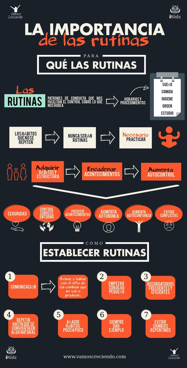 En el post de hoy, te dejo un infográfico con las claves de las rutinas, los motivos por los que son tan importantes y los trucos que debes tener en cuenta si quieres establecer rutinas de forma efectiva.