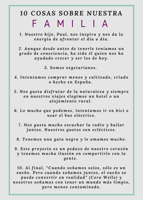 Le he pedido a Silvia y Pablo que nos hablen un poco de ellos y de su proyecto, para que veas que familia más bonita son y cómo contribuyen con su granito de arena a mejorar nuestro planeta y nuestras vidas.