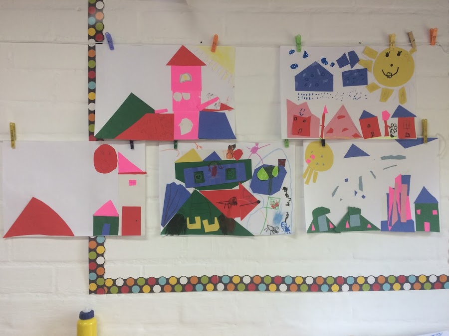 En la siguiente actividad les entregué diferentes figuras y les pedí que realizaran un paisaje con ellas. Esta fue una de mis actividades favoritas.