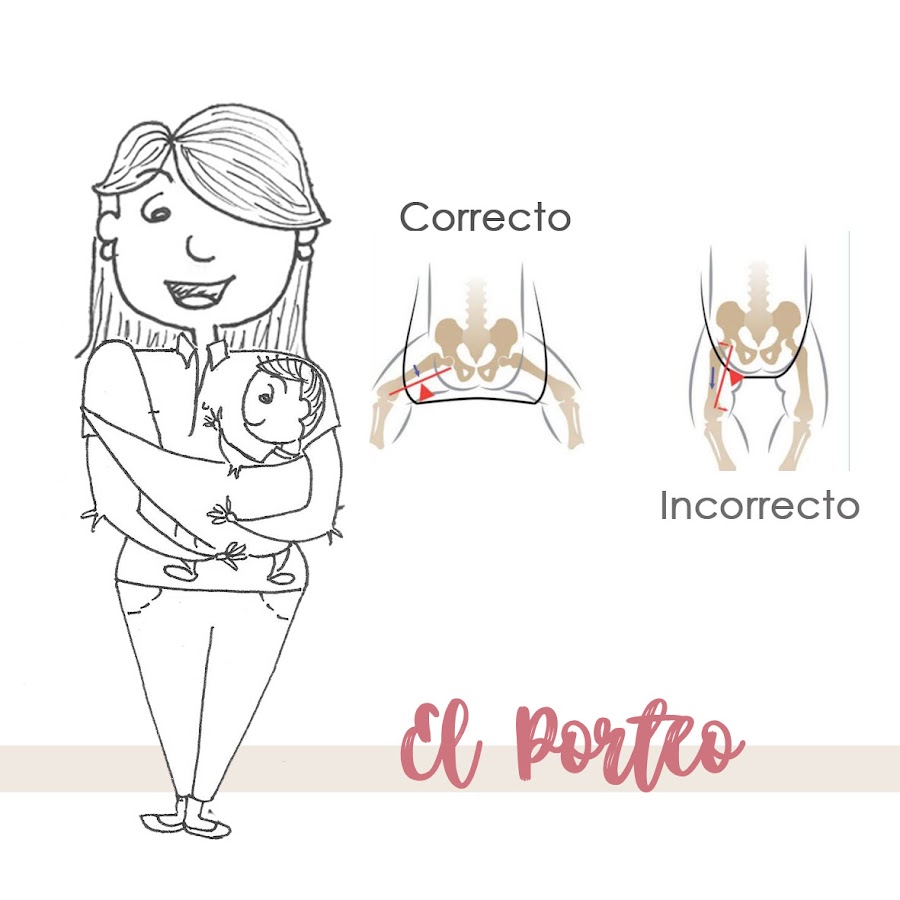 Las rodillas deben estar más altas que las pompas del bebé, favoreciendo la posición de ratina para rodear al portador.