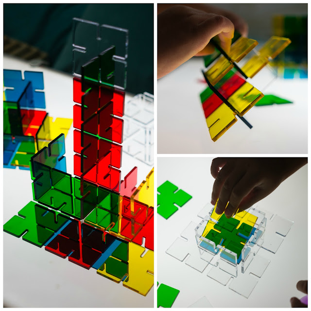 Le encantan, son de 5 colores y 6 formas diferentes y como juego de construcción, experimentando con la transparencia, la luz, el reflejo… son geniales.