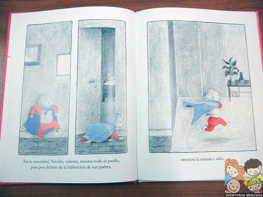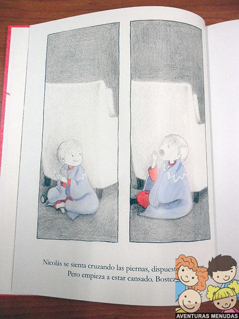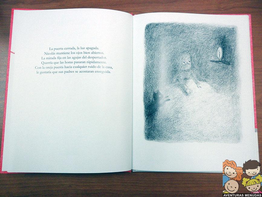 La verdad es que me encantan las ilustraciones de este cuento. Son tiernas, sencillas, llenas de sombras y luces, con lo que da un tono muy nocturno y misterioso al cuento. El pequeño Nicolás se hace de querer nada más abrir la primera página del libro.
