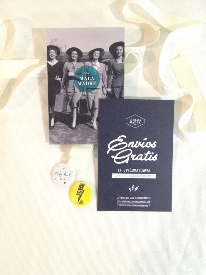 Chapas y postal Malamadre con un cupón dedescuento en la tienda, como siempre, el mensaje de la postal me encanta... a malamadrear!