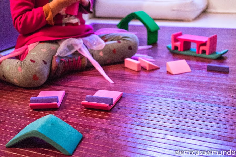 Es increíble la cantidad de utilidades que le saca, no sólo para hacer torres altas (árboles o castillos según ella), también se puede inventar un coche, o una cola de sirena, o construye un camión para sus animales, un barco para sus princesas o una casa para su gato de peluche.