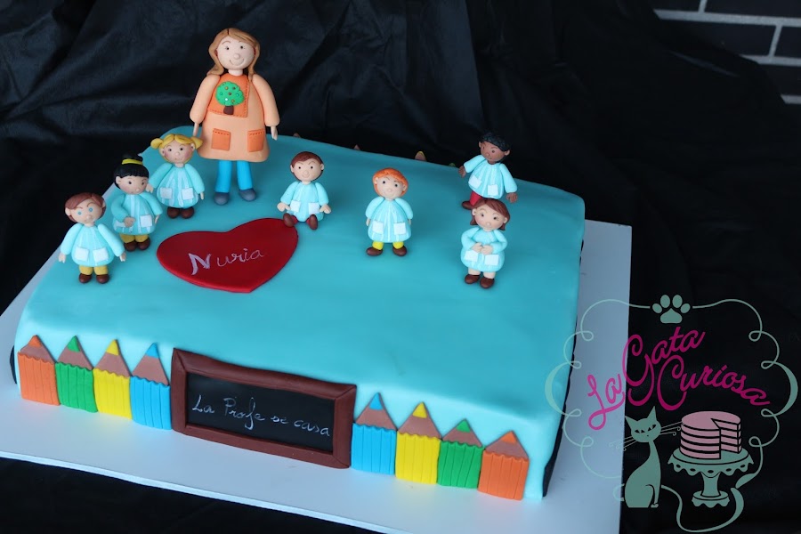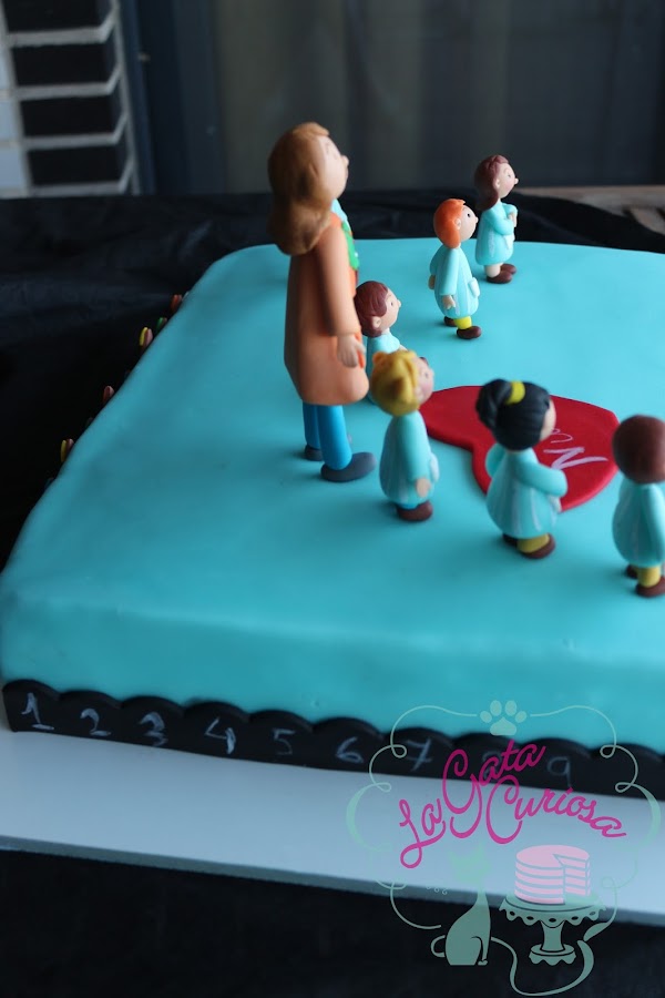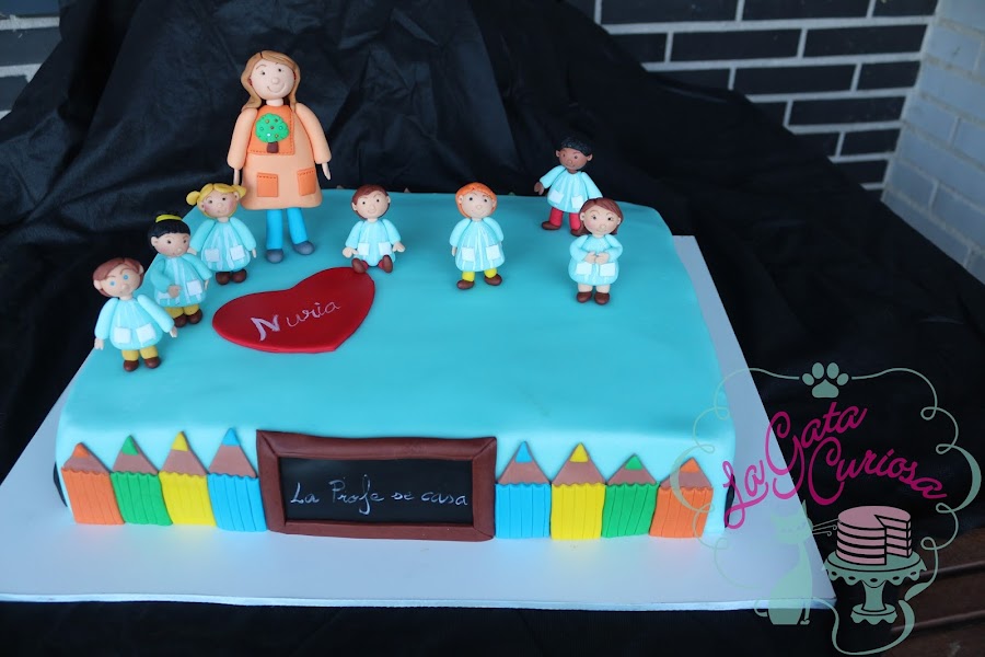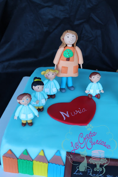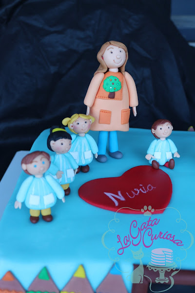 No están todos los niños de la clase, pero si una amplia representación, y por supuesto Nuria, la profe que se casa, la verdad es que ha sido muy bonito hacer esta tarta, espero que a Nuria le gustase.