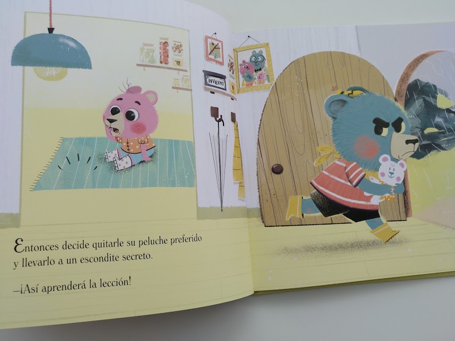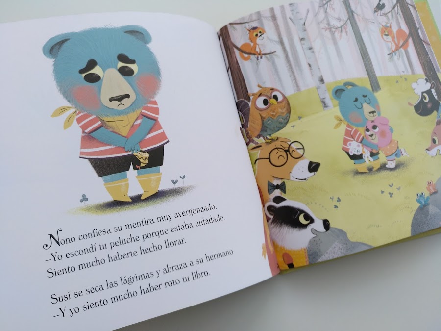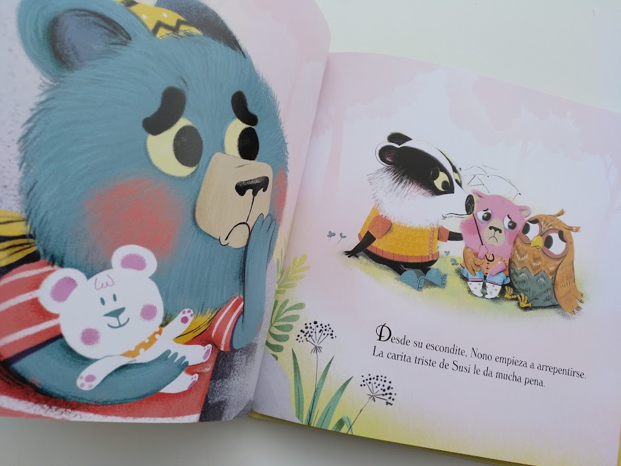 Es un libro ideal para gestionar rabietas que tiene como protagonistas a dos hermanos osos, Nono y Susi. Nono está muy enfadado con su hermana Susi porque ésta le ha roto sin querer su libro favorito. ¡En el bosque de Bonito Rincón el gruñido del osito enfadado retumba por todos lados!