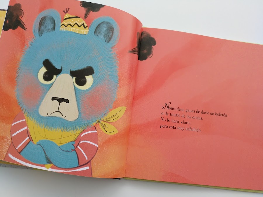 Es un libro ideal para gestionar rabietas que tiene como protagonistas a dos hermanos osos, Nono y Susi. Nono está muy enfadado con su hermana Susi porque ésta le ha roto sin querer su libro favorito. ¡En el bosque de Bonito Rincón el gruñido del osito enfadado retumba por todos lados!