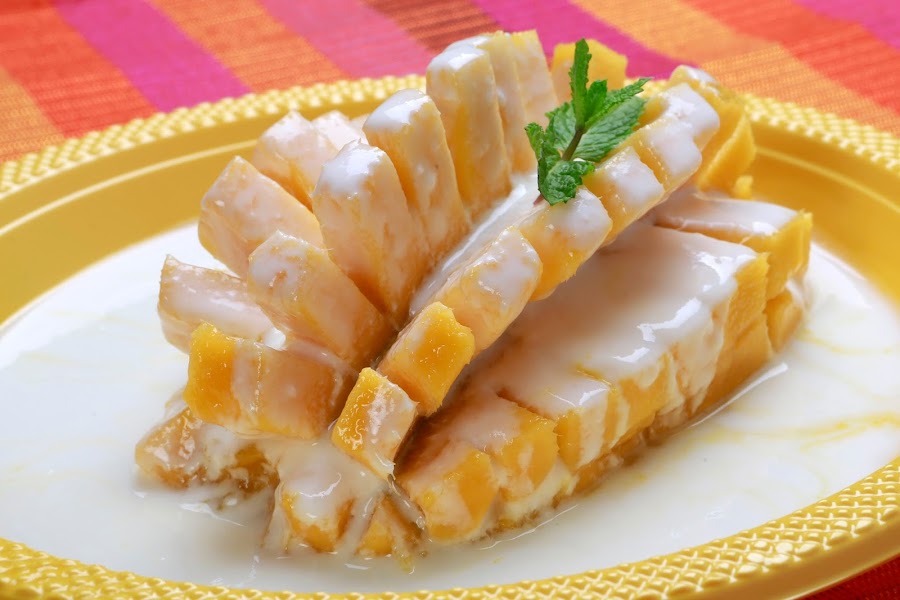 PreparaciónMezclamos en un bol el yogur, el queso fresco y el granini fruti leche tropimix. Reservamos en frío. Cortamos los mangos por la mitad procurando esquivar el hueso. Hacemos cortes lineales de medio centímetro sin llegar a traspasar la piel para que no se rompa. Empujamos de la piel hacia arriba para que le mango salga y quede emulando a un erizo.Salseamos con la mezcla reservada.