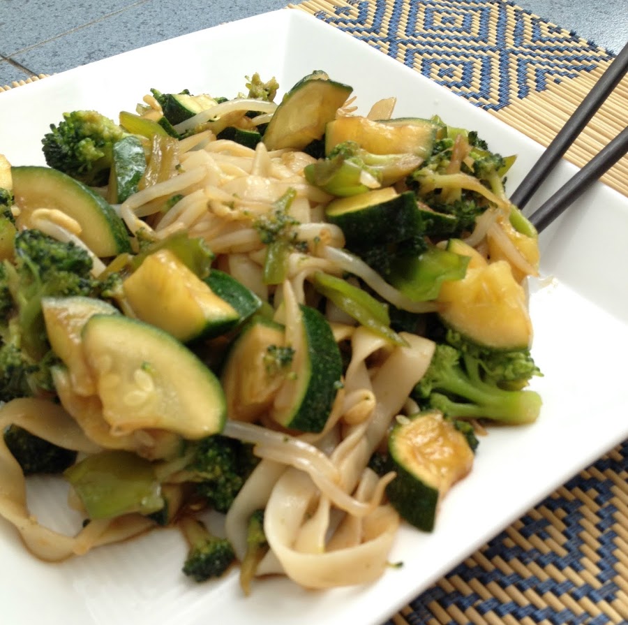en trozos pequeños. Para todo, yo quito la piel del calabacín, menos para este plato. Una vez cortada la verdura, la salamos y la pochamos en un poco de aceite de oliva. Mientras cocemos el brócoli. Yo lo hago en el Lekue y lo dejo un poco durito. Una vez cocido, lo incorporo al resto de las verduras. Después añadimos los brotes de soja la cantidad es al gusto, y seguimos rehogando todo junto. A continuación es el momento de agregar los tallarimis y seguimos cocinando toda la mezcla. Para terminar, regamos todo con un buen chorro de salsa de soja. Eso también al gusto. Dejamos que coja temperatura la salsa y ¡a comer!