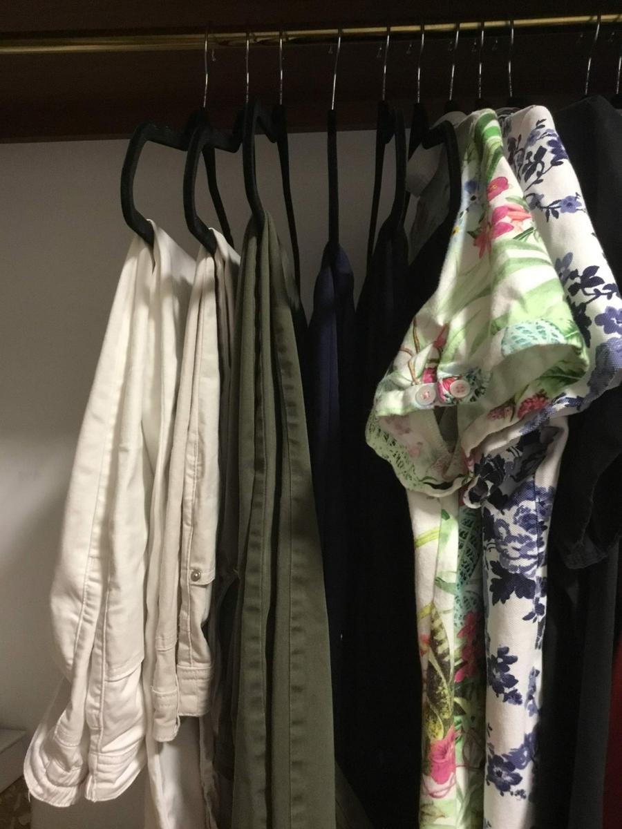 Primero compré 20 unidades y las usaba sólo para la ropa que me estaba poniendo. Y para las de la otra temporada que no usaba en esos momentos tenía perchas de plástico de diversos colorines. Pero cuando hice el cambio de armario, me encontré con un caos de perchas. Y como no lavo todo a la vez, esto duró varias semanas y no me gustó nada. Así que compré más. Esta vez en Carrefour. Y ahora estoy encantada.Mi número son 50 y me llega porque también tengo ropa doblada. Pero para otra persona pueden ser 35 y para otra 100. Lo importante es plantearte cuánta ropa necesitas realmente y no salirte de tu propia regla.