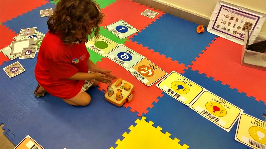 La robótica educativa que usan los niños en los campamentos es de Tufts University . Los niños programan con secuencias lógicas para su edad, por ejemplo un sencillo robot llamadado Kibo, que es majísismo y les encanta, les ayuda a comprender todo lo que la tecnología puede aportarles.Además, lo increíble de este método es que sigue el método de las "idiom cards", donde los niños ven las imágenes con el texto en inglés.
