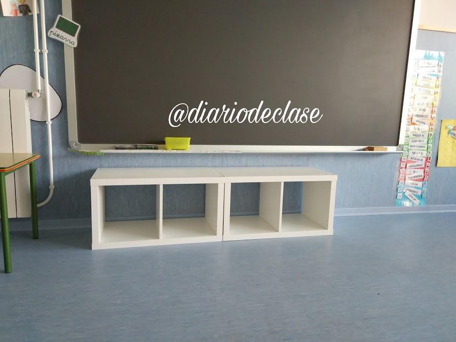 Para empezar he ido a Ikea y he cargado un par de muebles que iremos tuneando para darle color a la clase y sobretodo para favorecer la organización y el que haya un ambiente más diáfano y despejado.