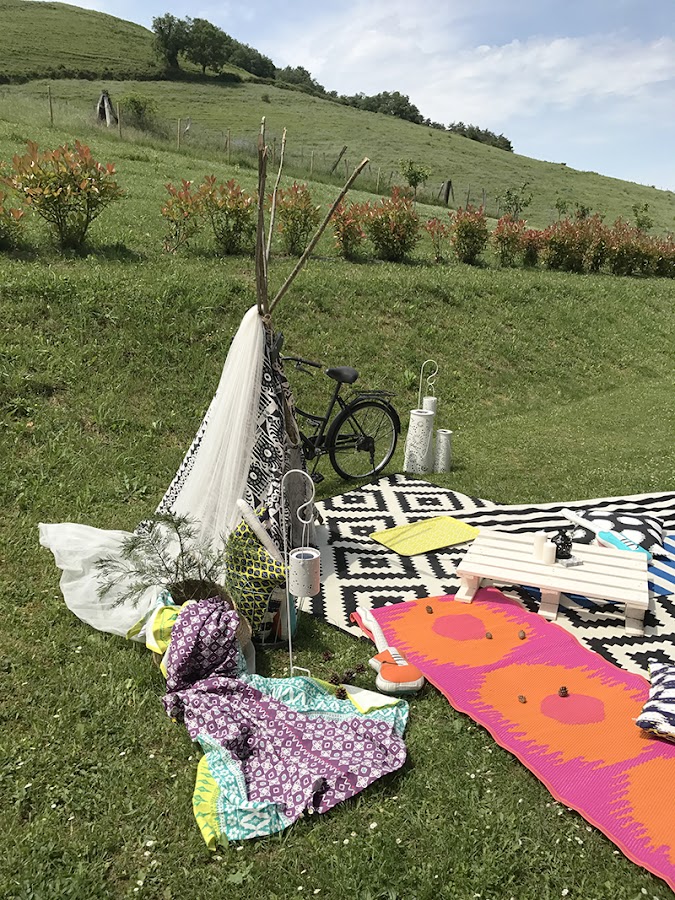 Tipi, bicicleta, palet... pero si el espacio tiene sentido, es gracias a los textiles que elegimos. Os hemos dejado los enlaces de todos ellos, porque pensamos que son piezas perfectas para un chill out como este, pero sobretodo para vestir y decorar cualquier casa. ¡A nosotros nos han enamorado! ¿Y a vosotros? ¿Cual es vuestro preferido?