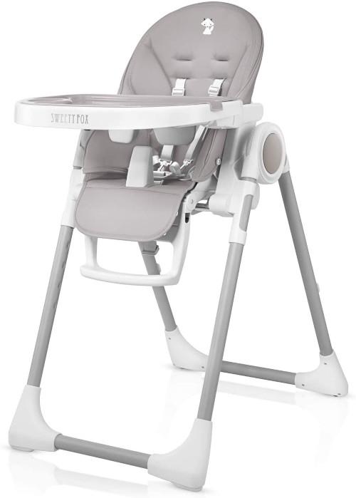 En esta trona evolutiva Sweet Fox, tu hijo siempre encontrará la posición adecuada para disfrutar de la comida, pues se ajusta muy fácilmente con 5 posiciones para el respaldo, 3 posiciones para el reposapiés y 7 alturas distintas para el asiento.