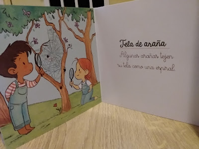 Se trata de un libro muy llamativo por las ilustraciones que están combinadas con páginas blancas donde nos hablan del sitio donde viven los animales. Además, las páginas se pueden limpiar fácilmente ya que el cartón está plastificado que con los peques es importante tener en cuenta las manchas. A las dos peques les llamó mucho la atención y I, a pesar de sus 5 años, me pidió que se lo leyese.